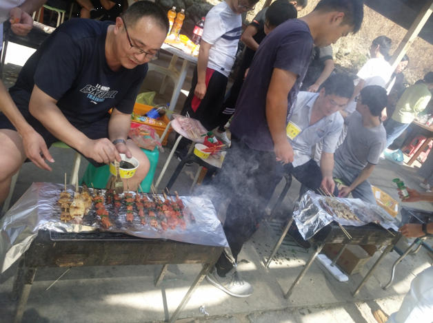 上午達到目的地后,各小組有條不紊的開始了第一項活動-自主烹飪。大家烹飪的內(nèi)容也是豐富多彩,有燒烤、火鍋、包餃子、還有本地特色豬肉飯。平常不怎么露手的各位可都深藏不露,在公司里研發(fā)中心團隊可是有著燒烤達人美稱的。今年又新晉一組美食達人團隊總裁、人力組,因為他們成功打破了往年幾次燒豬肉飯失敗案例,這個逆襲非常漂亮!毫不低調(diào)的說風馳這個大家庭里有著廚師級別的成員也是高手云集的。經(jīng)過一番忙碌之后,大家心滿意足的享受完一起親手烹飪的美食。